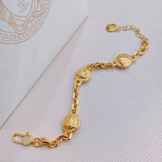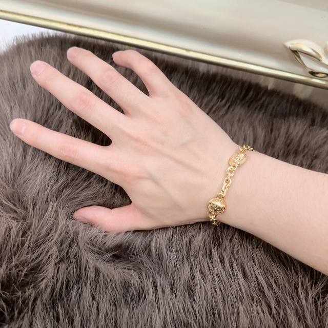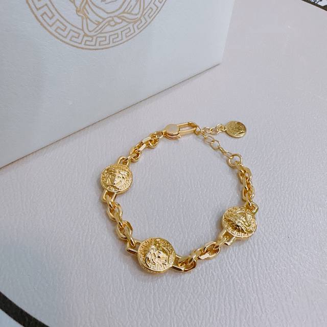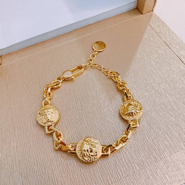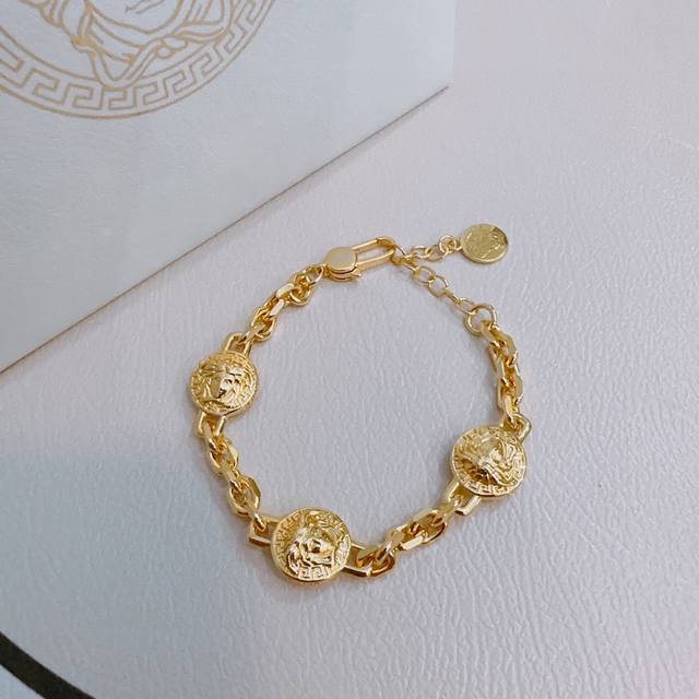 High-quality Versace bracelet with Medusa head, original goods, new counter model, retro fashion, must-have for both men and women, suitable for couples, rock punk Thai silver style, retro elements, trendy and versatile, same bracelet as the official website, the latest chain is higher grade, classic celebrity necklace series, retro silver bracelet