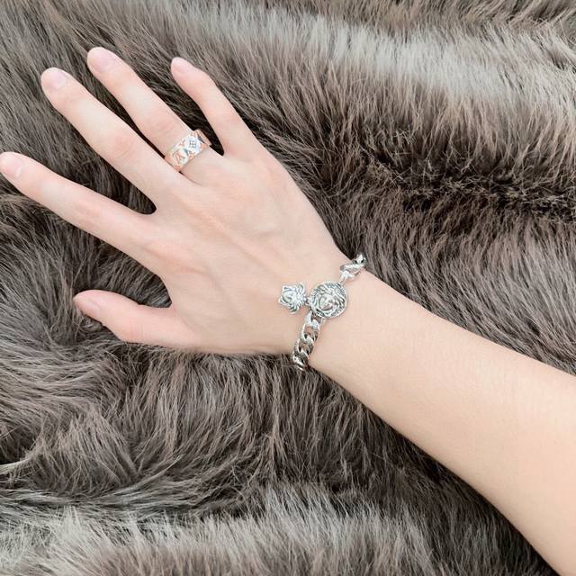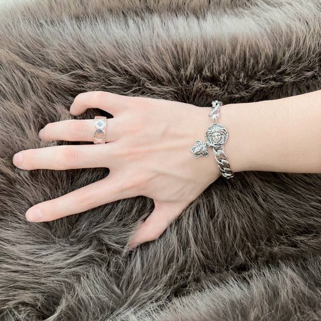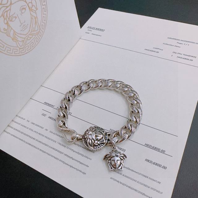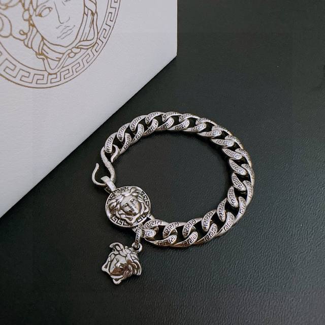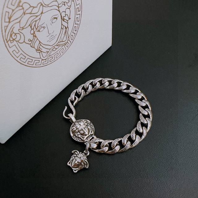 High-quality Versace bracelet with Medusa head, original goods, new counter model, retro and fashionable, must-have for both men and women, suitable for couples, rock punk Thai silver style, retro elements, trendy and versatile, same necklace as the official website, the latest chain is higher grade, celebrity classic necklace series, retro silver bracelet