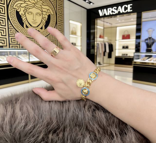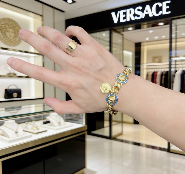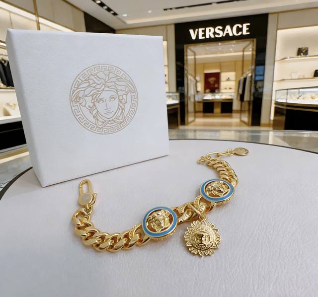 High-quality Versace Medusa head bracelet, original single-piece, new counter model, retro trendy fashion must-have, unisex, couple style, rock punk Thai silver style, retro elements, trendy and versatile, same style as the official website, latest model, higher grade chain, celebrity classic necklace series retro silver bracelet