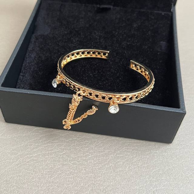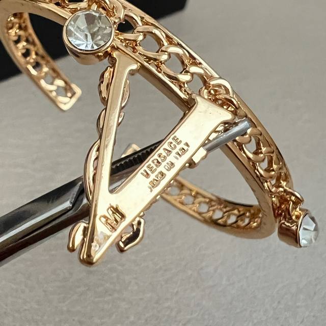The Versace bracelet's logo is Medusa, the Gorgon from mythology, representing fatal attraction. The Italian luxury brand Versace has created a unique fashion empire, representing a brand family whose fashion products dominate every aspect of life. Its designs are distinctive, aesthetically pleasing, and feature interlocking brass links with vintage electroplated engravings.