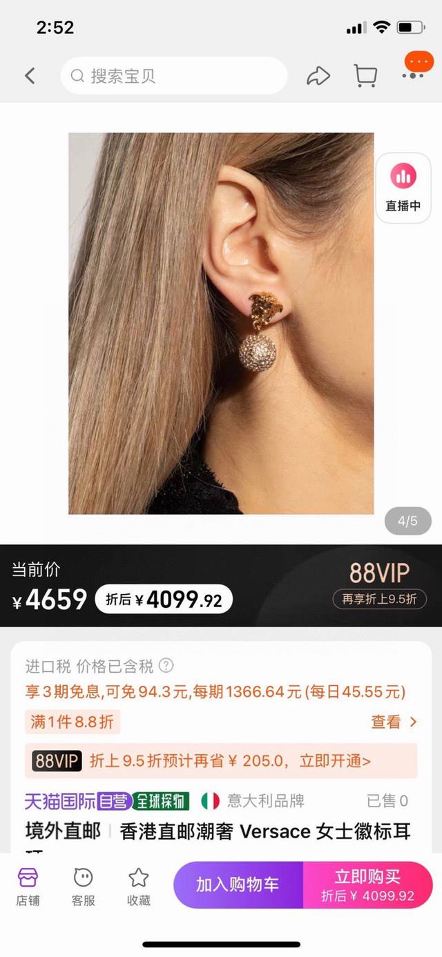 Versace Medusa Gold Head Maze Design Stud Earrings, Runway Style, Selected Origi