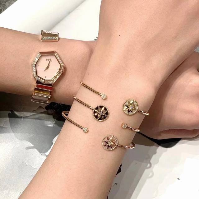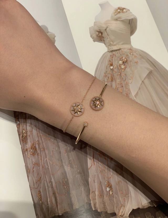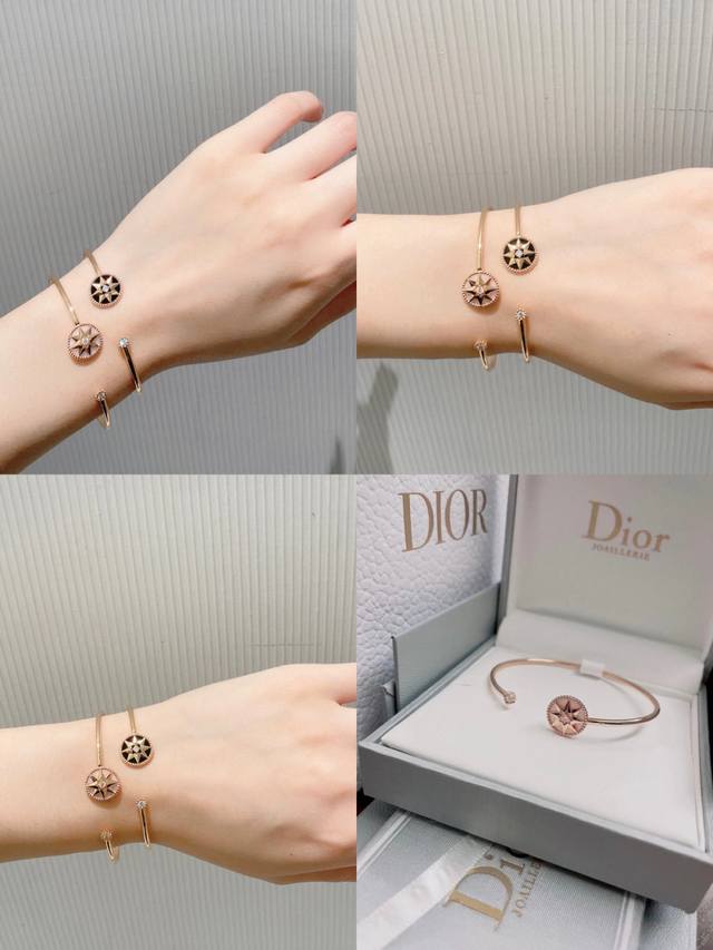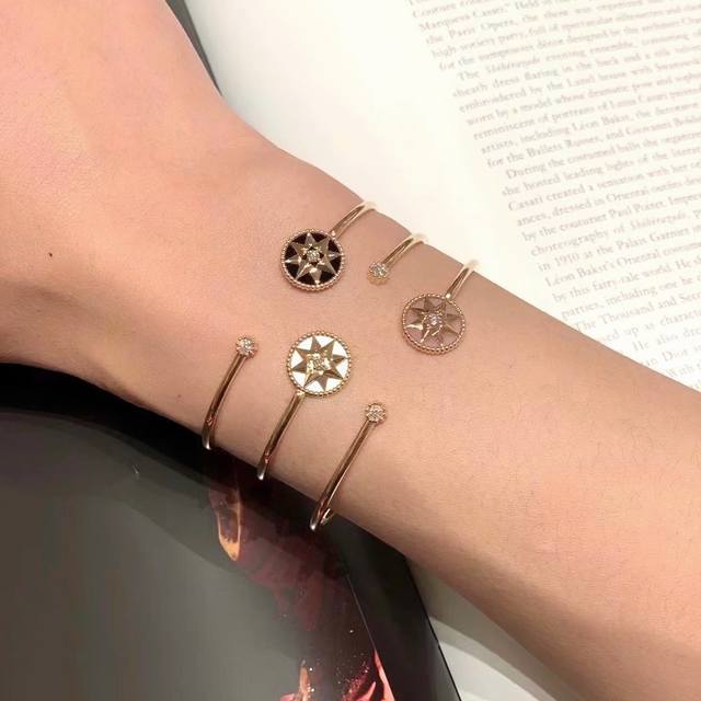 We produce compass-style open bracelets, available for custom order in 18K gold and with genuine diamonds. We only produce genuine gold pieces that match the original design. For pricing, please inquire. We also wholesale various gold items on the market. Victoire de Castellane reinterprets Mr. Dior's lucky star with an eight-pointed star-shaped compass rose. Adorned with diamonds, it is dazzling. This precious design showcases jewelry expertise and Dior's exquisite craftsmanship. Made entirely of 925 silver for longer color retention.