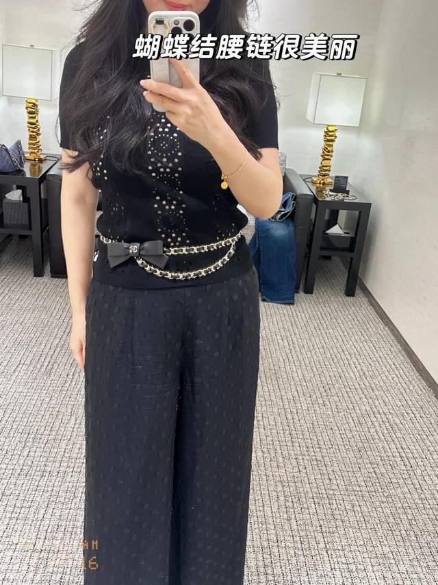 Black leather bow waist chain, latest 2025 Autumn/Winter collection! Exclusive first release online, in stock, first come first served! Super beautiful and ethereal, consistent with the Z batch, specially customized lambskin, super bling and heavy-duty! Lively yet sweet and sassy, adding a touch of sophistication to summer outfits. Fashionistas, don't miss out! A must-buy!