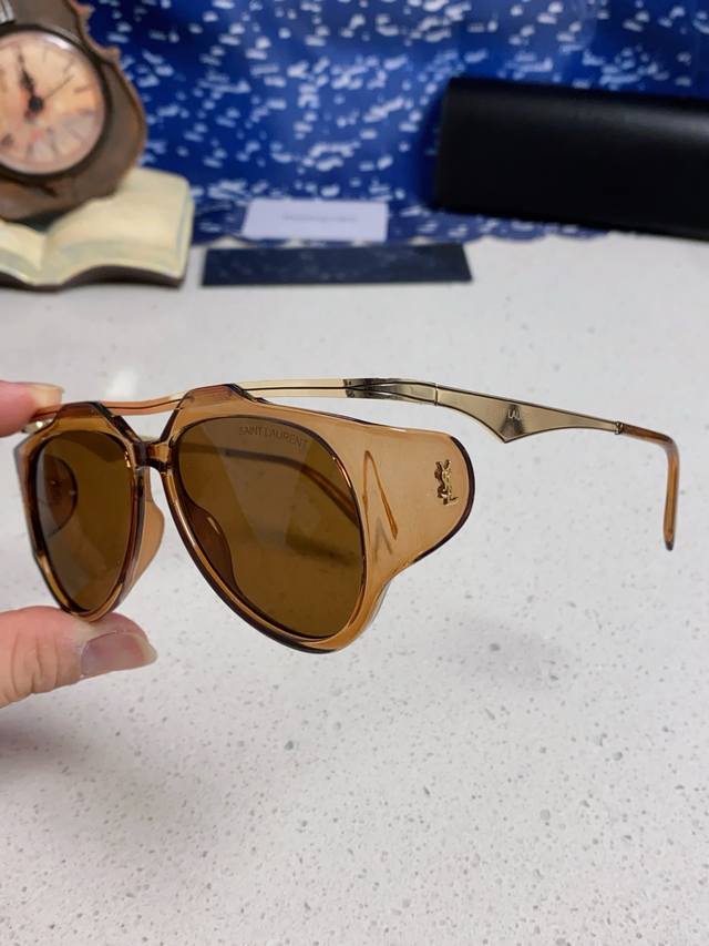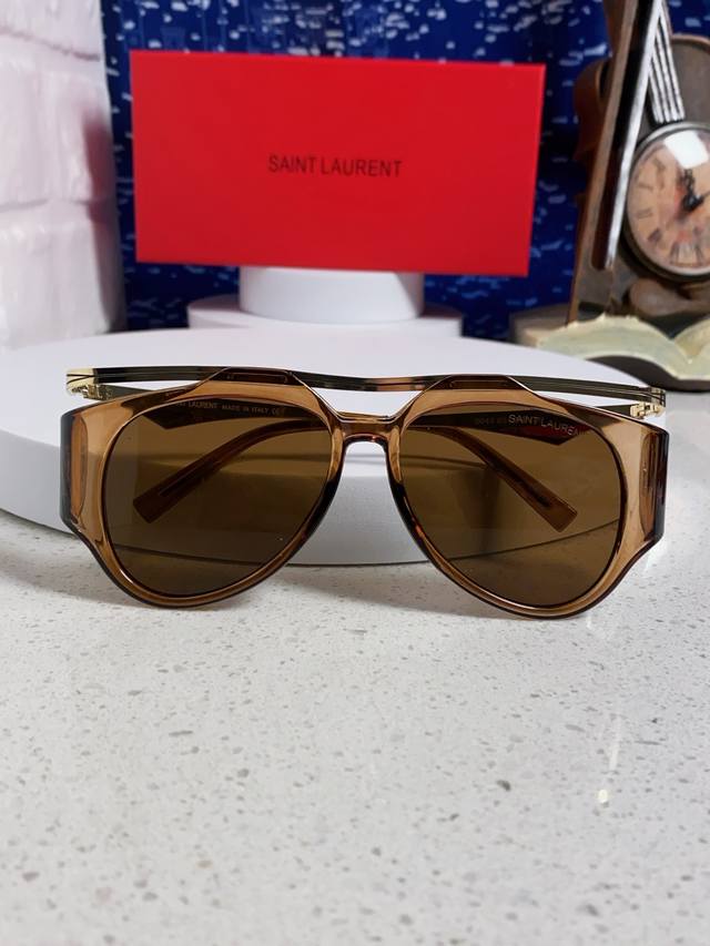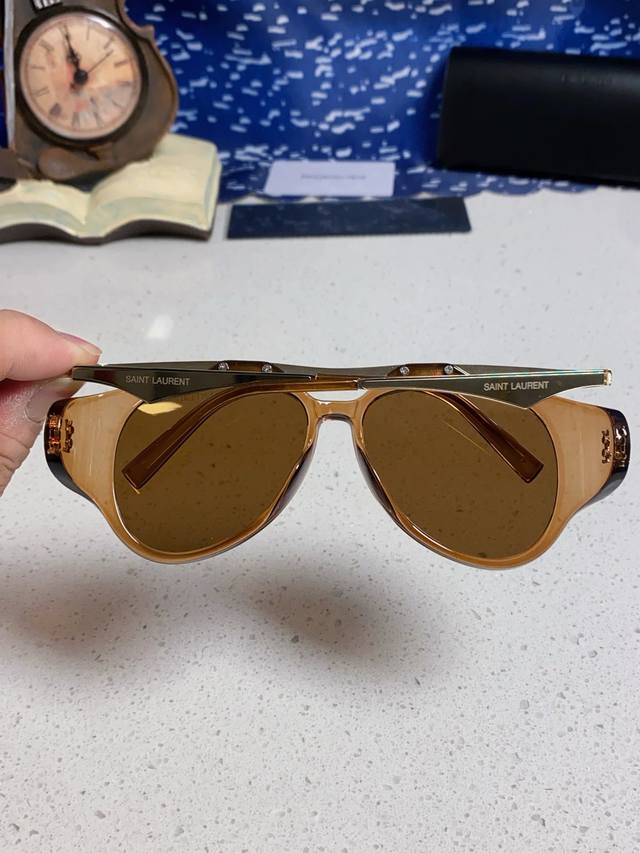 Saint Laurent New Style Fan Bingbing's Same Style European and American Retro Steampunk Round Oversized Double Bridge Sunglasses for Men and Women Supermodel Runway Street Style Trendy Sunglasses