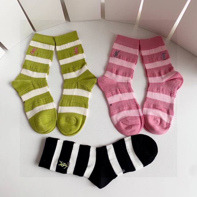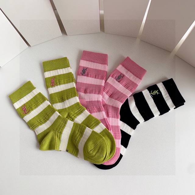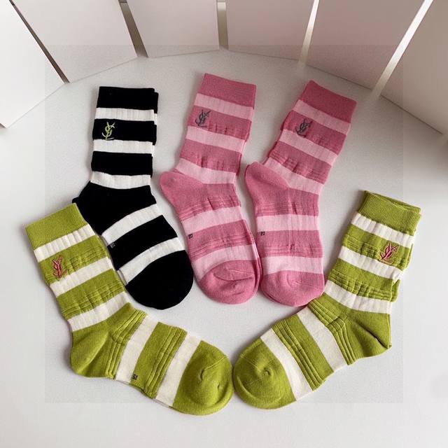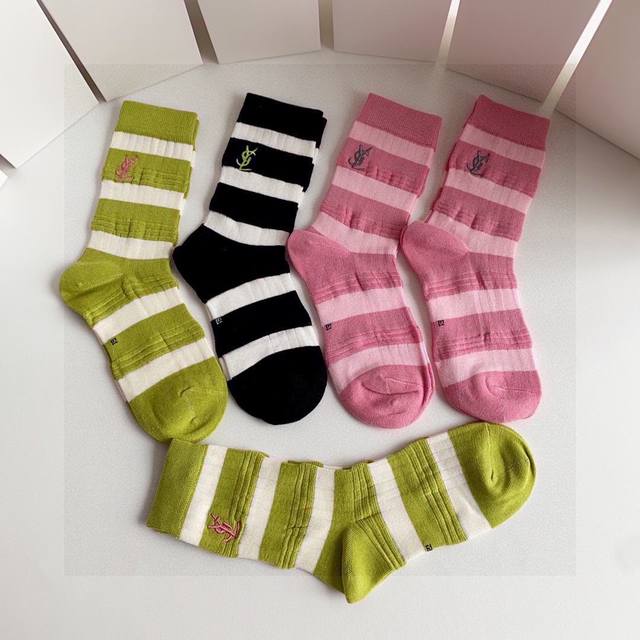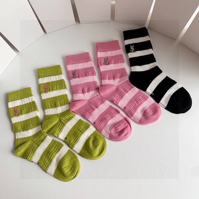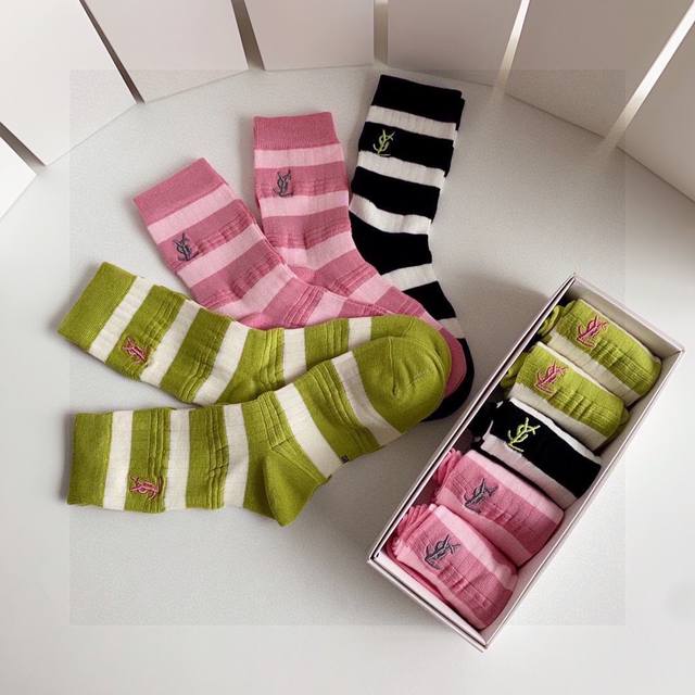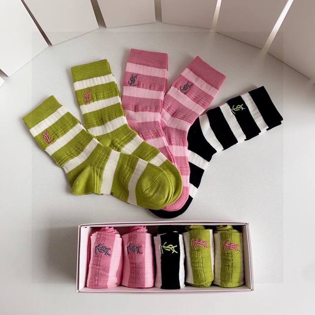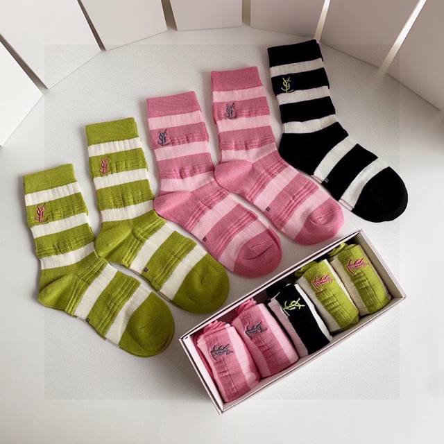 Special packaging for YSL Saint Laurent new mid-length embroidered slouch socks! Five pairs per box, same style as in department stores, designer street style, a must-have for trendsetters, super easy to match.