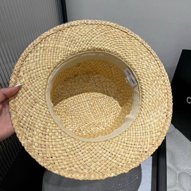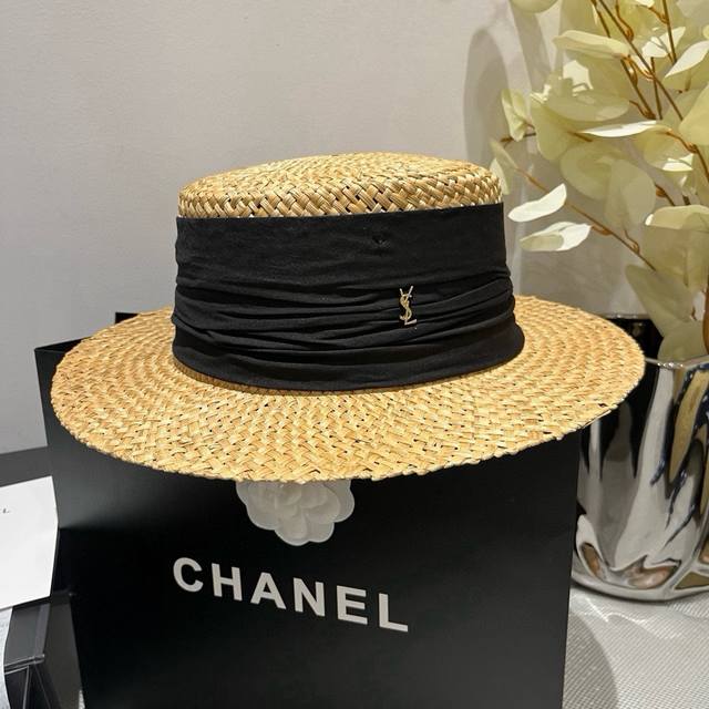 Ysl Saint Laurent new flat top hat, straw hat, head circumference 57cm DDD