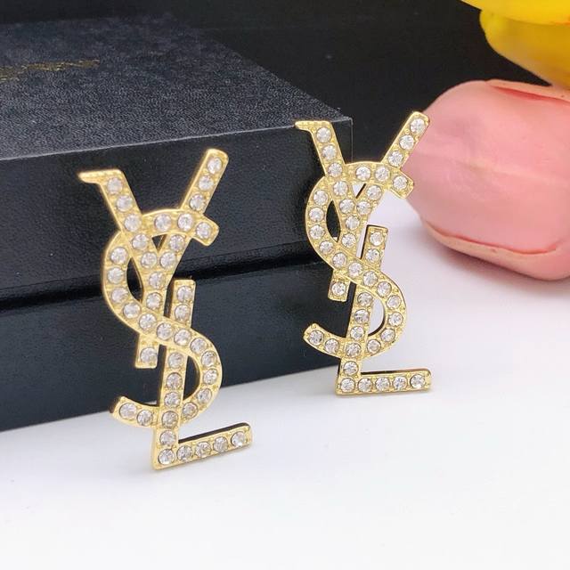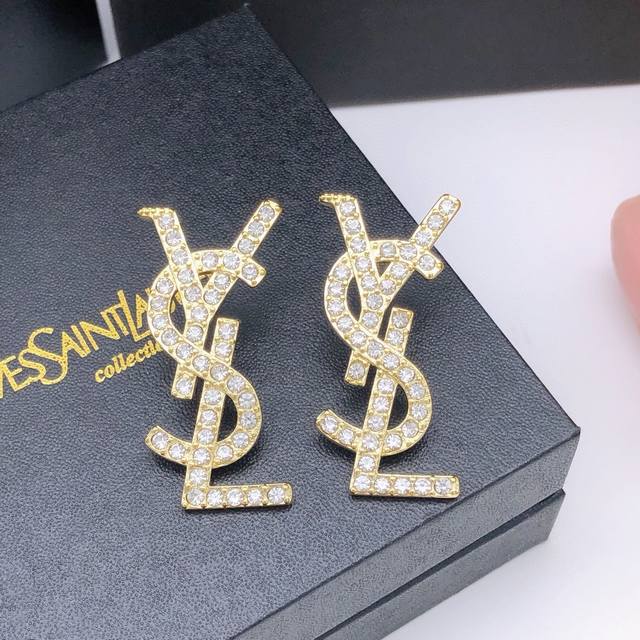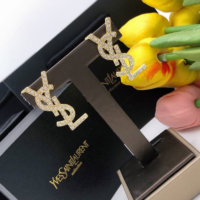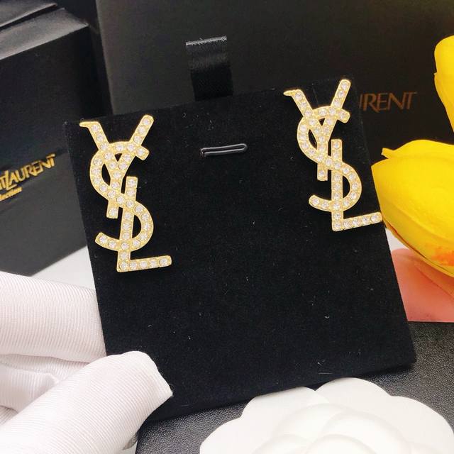 / Item No. Yed0011 Saint Laurent earrings with diamond setting, gold color.