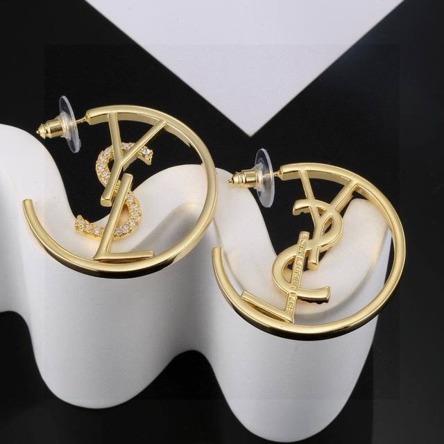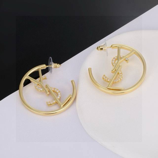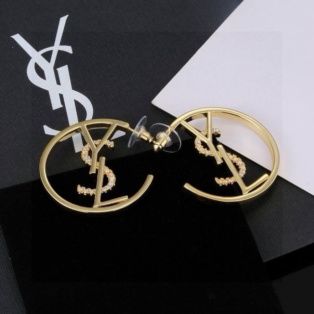 Saint Laurent YSL hoop earrings, classic luxury style, versatile and chic, like a gown for a cocktail party, dazzling and captivating. Classic and uniquely charming, symbolizing timeless elegance, representing classic and eternal beauty! Inheriting Saint Laurent's tradition, these earrings are exceptionally sparkly~ (