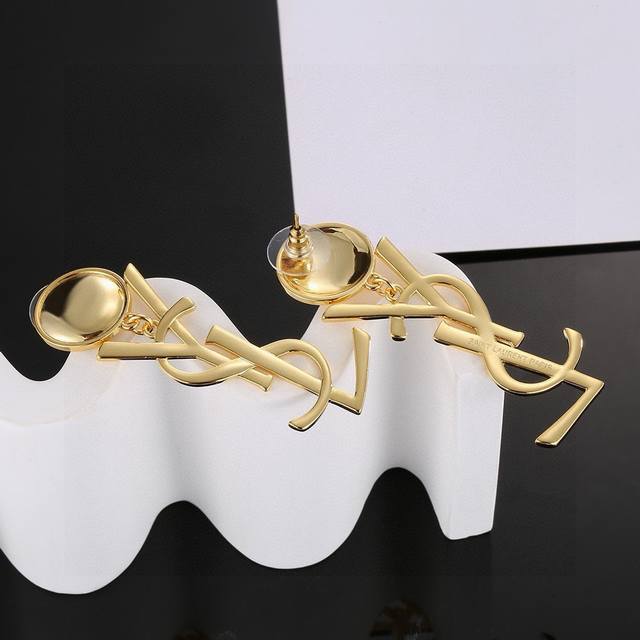 Ysl Saint Laurent earrings, original brass. Founded in 1961, Yves Saint Laurent's elegant, abstract, bold and unique design style has made it one of the most famous brands in the luxury fashion world. It leads the way in exquisite, fashionable and innovative French fashion styles.