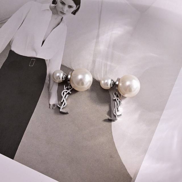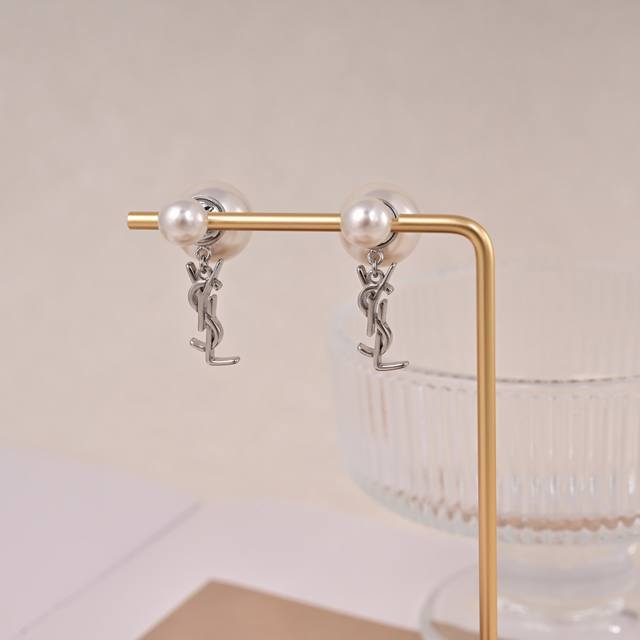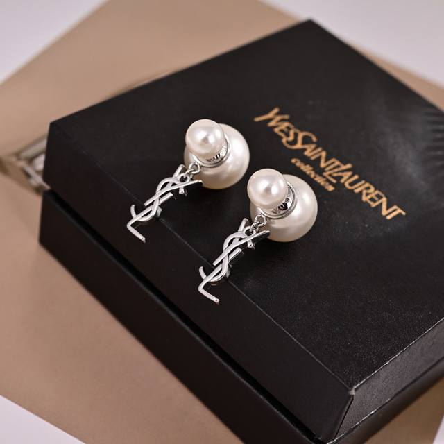 YSL Saint Laurent Letter Pearl Earrings, original brass material. Yves Saint Laurent, founded in 1961, is a renowned brand in the luxury fashion world, known for its elegant, abstract, bold, and unique design style. It leads the way in sophisticated, fashionable, and innovative French fashion. (