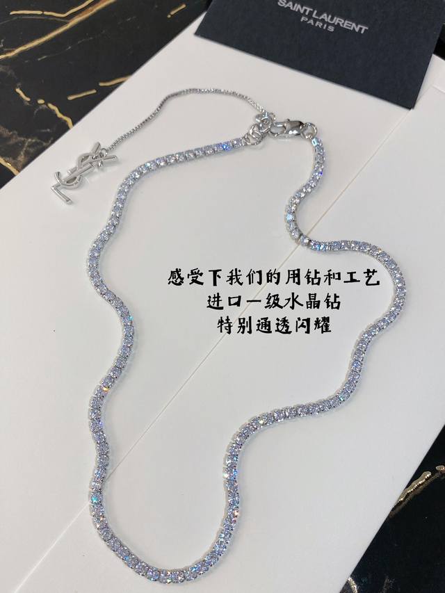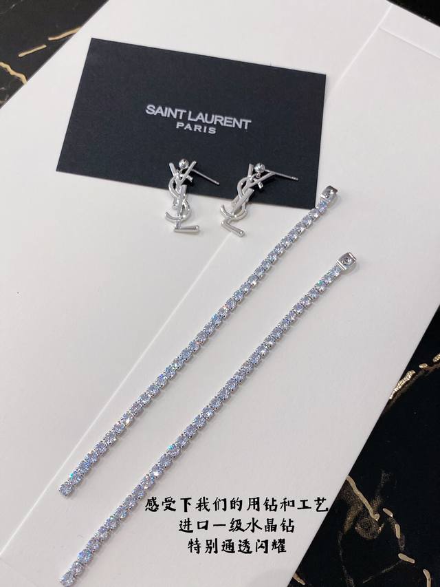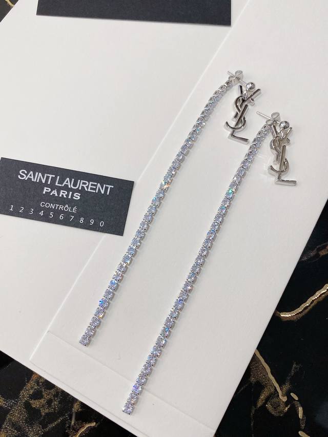 YSL Saint Laurent Letter Tassel Full Diamond Necklace and Earrings, Original Brass Material. Yves Saint Laurent, founded in 1961, is a renowned brand in the luxury fashion world for its elegant, abstract, bold, and unique design style. Leading the way in sophisticated, fashionable, and innovative French fashion style, these necklaces and earrings are available from